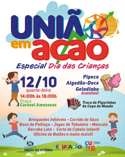 O evento organizado pela Administração Municipal, Secretarias Municipais de Cultura e Educação, vai levar diversas atrações, brincadeiras e diversão para as crianças de União da Vitória e região.